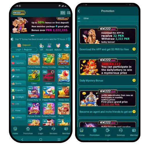 On the KK222 platform, players can not only earn money through simple games but they can also easily transfer their earnings budge to their Easypaisa and Jazzcash wallets. With these options, players can deposit or withdraw.